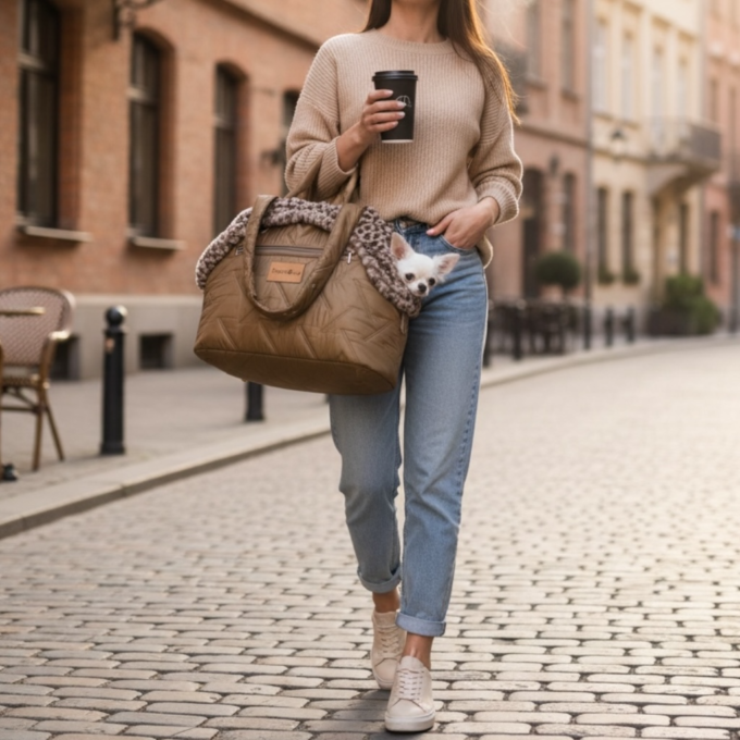 Vivien to torba całoroczna – zimą ogrzewa pieska wnętrzem z mięciutkiego materiału Rabbit, a latem – po jego wyjęciu – staje się lekką torbą idealną na ciepłe dni.